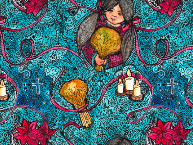 She was inspired by an angel to gather weeds from the roadside and place them at the church altar. The weeds sprouted crimson blossoms and were transformed into the gorgeous Cuetlaxochitl flower (or Euphorbia Pulcherrima, their botanical name).
