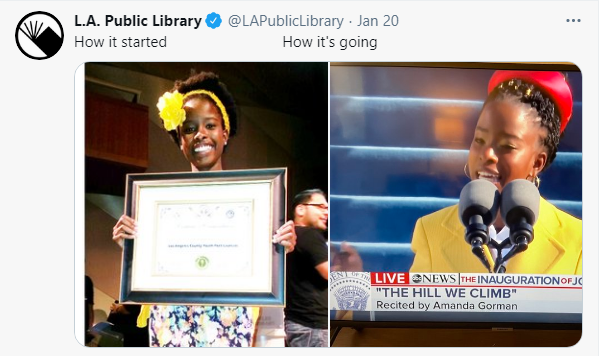 Chances are you’ve seen her name across headlines thanks to her inaugural poem “The Hill We Climb,” 📰 but the story behind Amanda Gorman becoming a Harvard-educated laureate sheds light on a vital subject: the pivotal impact public libraries can have on kids 📚