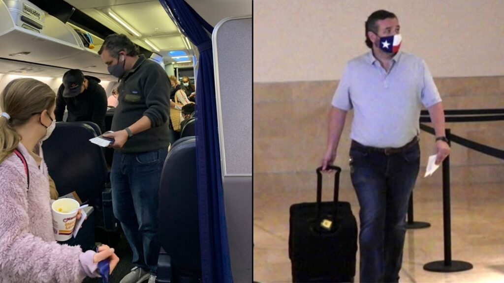 As photos and video taken by someone on the same plane as Ted Cruz made the rounds on social media, it sparked outrage online from Republicans and Democrats alike. Cruz quickly backpedaled and returned to Texas on the next flight.