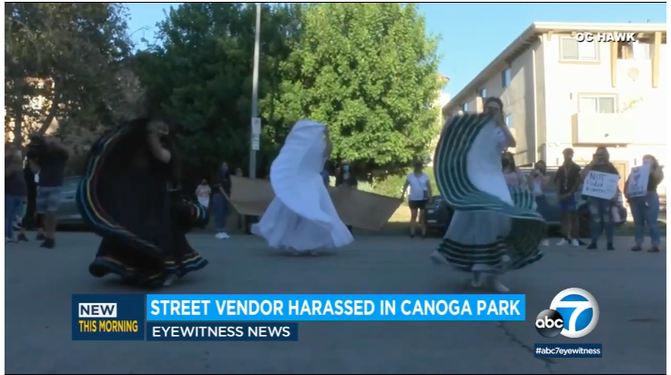 In Canoga Park, a Latino neighborhood in LA, a street vendor was harassed by a resident with a history of spouting racist anti-immigrant language. But neighbors demonstrated in front of the harasser’s home in August 2020—and performed ballet folklórico in the street!