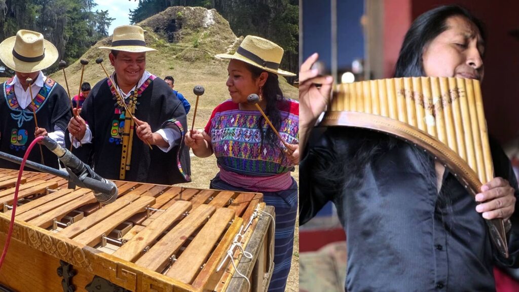 There’s debate about whether number three, la marimba, is African (rimba is a Bantú word) or Indigenous in origin, but it prospered in Central America and still does. Number four is the harmonica’s grandpa, the antara, created by ancient civilizations in Peru with bamboo.