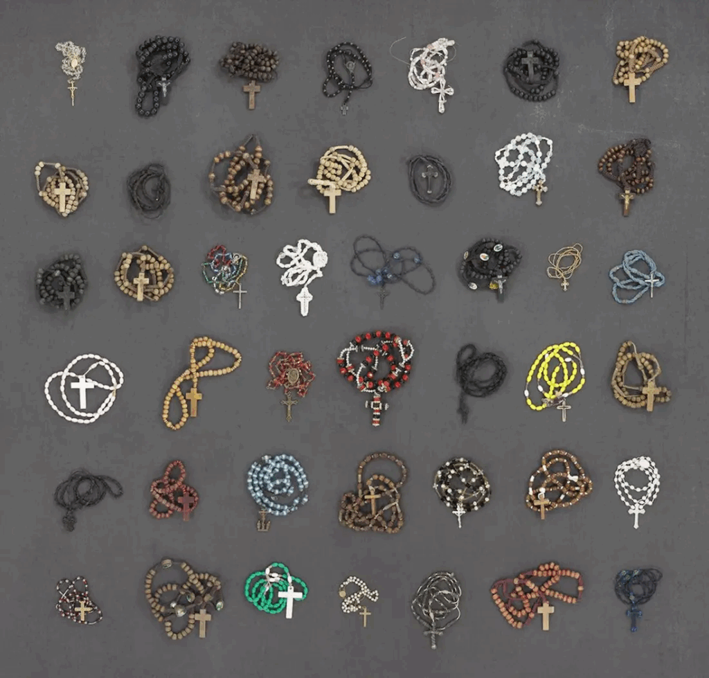 And it also allows viewers to witness the absurdity of what is considered “lethal or nonessential” by border officials, and subsequently thrown out. Toothbrushes fit into this category… along with rosaries that offer hope or protection to those who carry them.